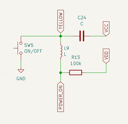 The POWER_ON pin is only pulled up with the resistor R15, if it were damaged and it goes below the logic high limit, the MCU will assume the power on button is pressed. I have observed it to measure 20mV and 500mV sometimes, others it goes high as expected at around +4.7V.