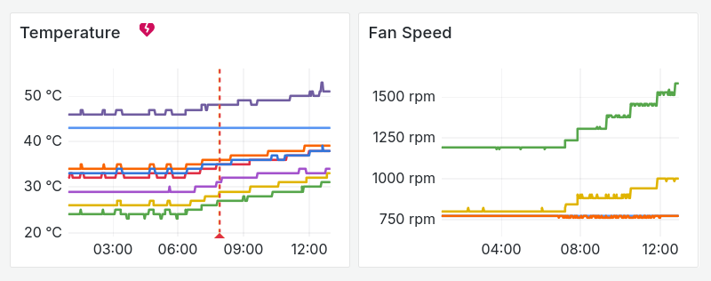 Causing the temperature of the machine to raise, despite the fans increasing their speed. While in this case the situation went back to normal after a short time, it may happen that during the summer holidays it happens for a long time causing the machine temperature to rise to a unsafe level.